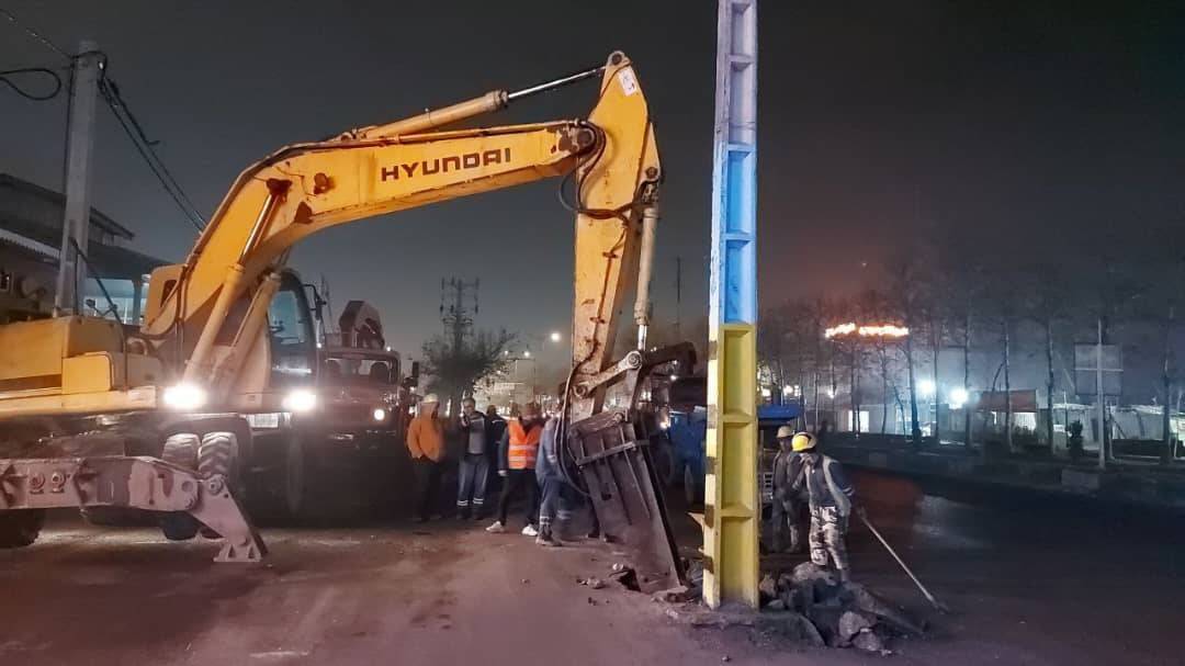 عملیات شبانه کارکنان توزیع برق گیلان برای ایمن‌سازی معبر کنارگذر میدان امام حسین (ع) رشت